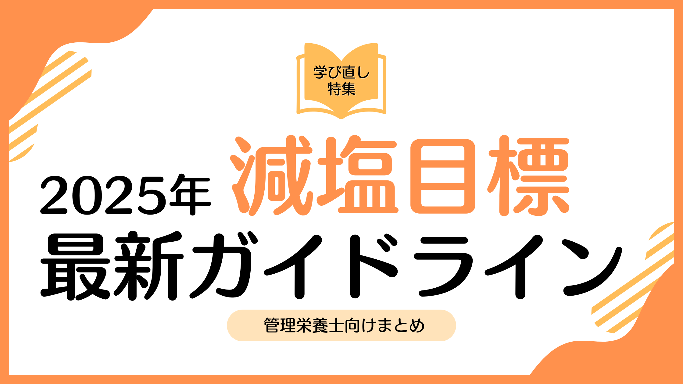 高血圧や糖尿病など生活習慣病の予防・治療において、「減塩」は最も基本的かつ重要な栄養指導の一つです。とくに管理栄養士が病院や特定保健指導の現場で患者さんに説明する際には、最新のガイドラインを整理して理解しておくことが欠かせません。